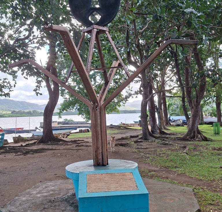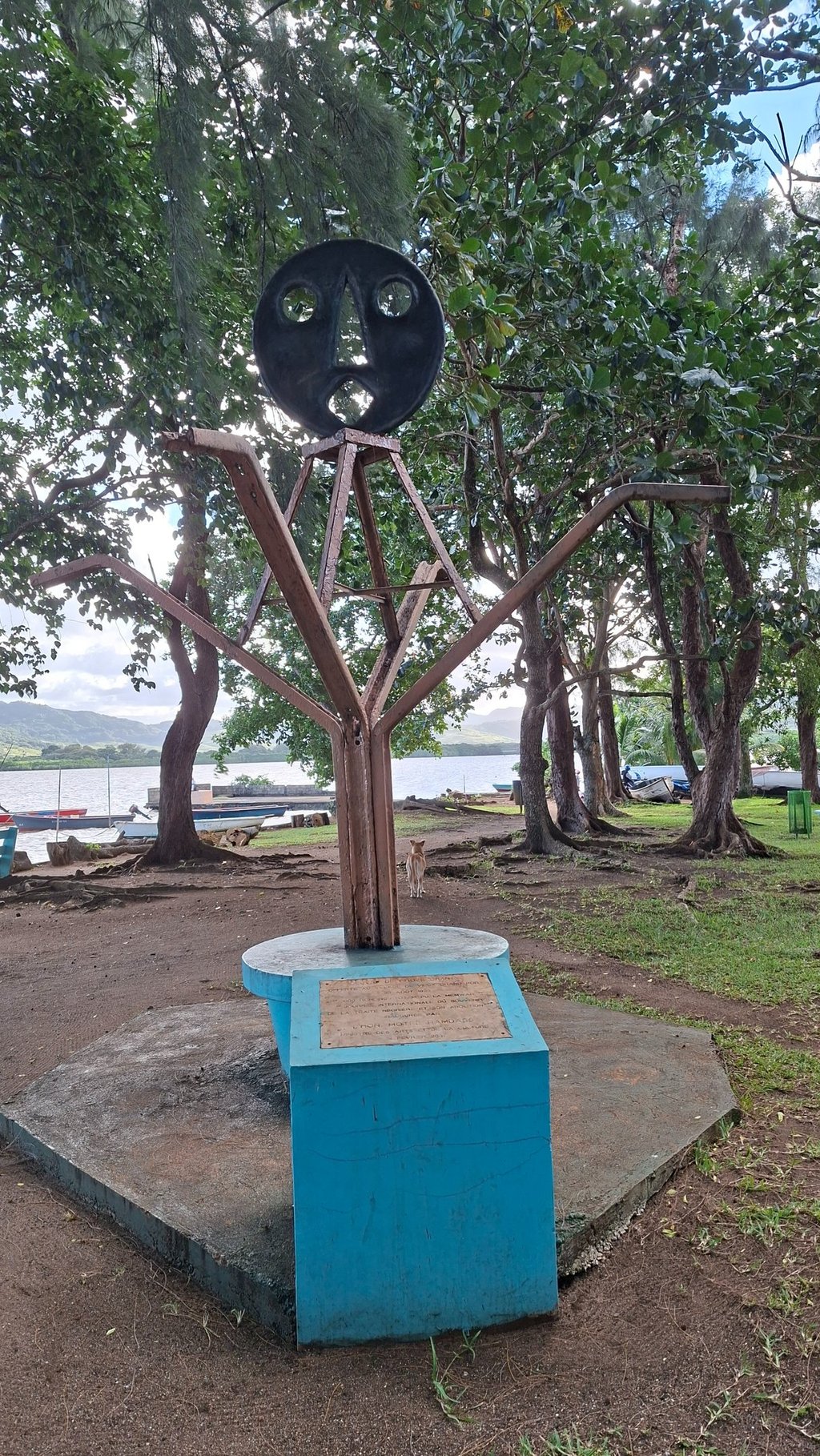 This totem is in the memory of the first enslaved people brought on the island by the Dutch in 17th century. It was conceptualized and made by the late and famous Mauritian artist and activist, Firoz Ganthy.